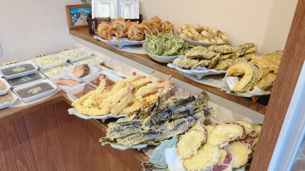 カリッと揚げられた天ぷらや、煮魚、焼き魚もおいしそうです。