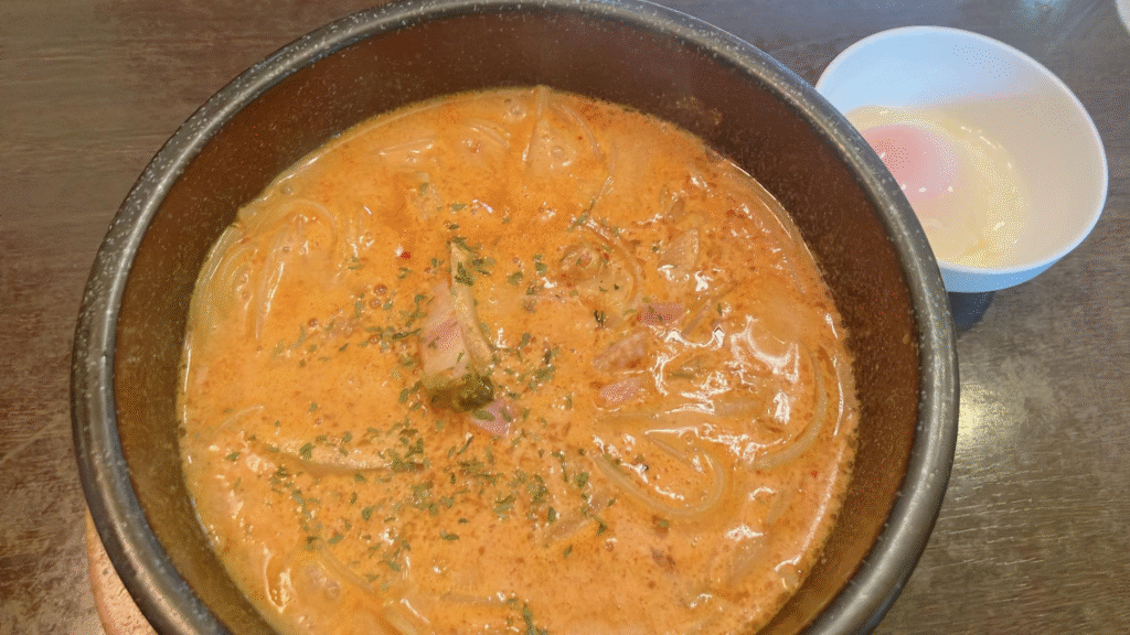 キムチのピリ辛さがありながらもクリームでマイルドに食べることができます。