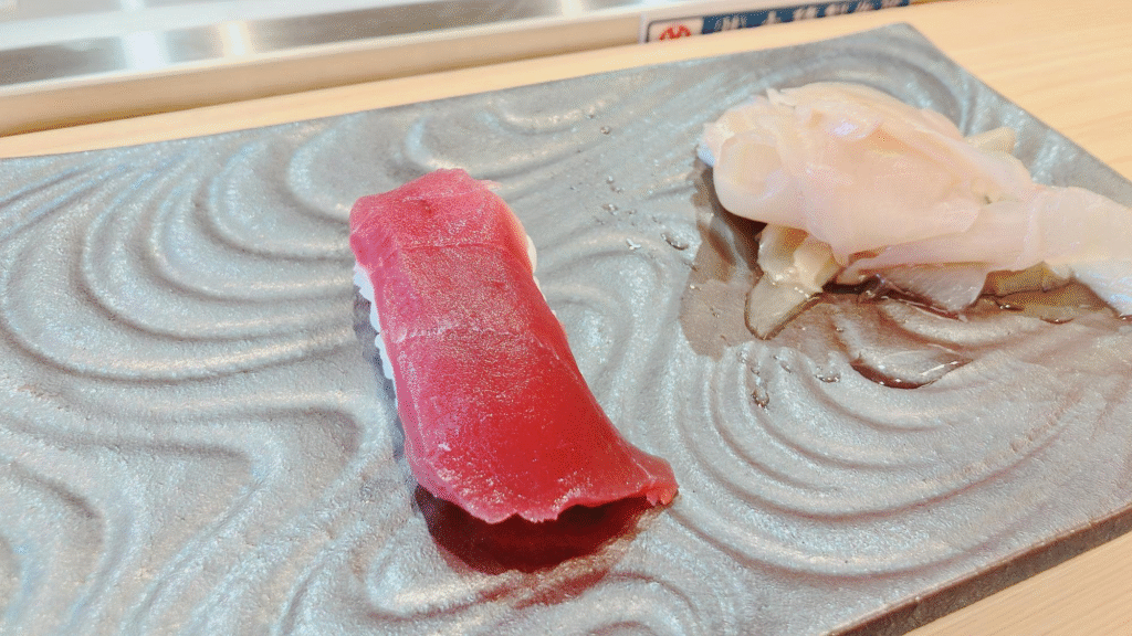 ほんのり暖かくふんわりほぐれるシャリや、大きく切られた新鮮なネタのおいしさは、回転寿司とは比較になりません。