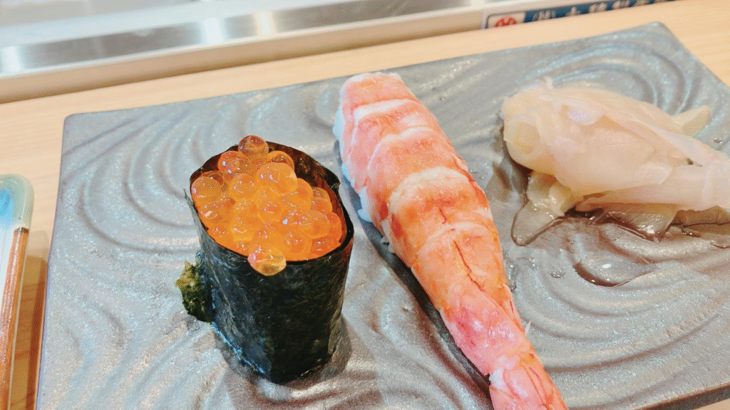 一口では食べきれないほど大きくてプリプリなエビ、プチプチとした食感が楽しい大粒のいくらと、どのネタも洗練されていてとてもおいしいです。