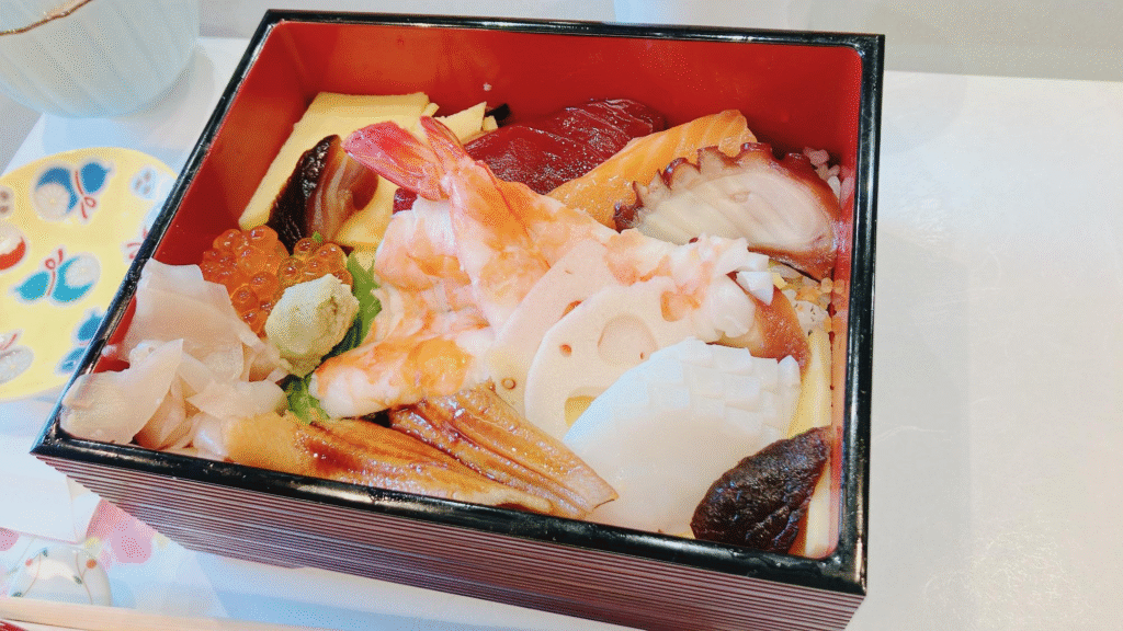 蛸の甘露煮、漬け鮪など手の込んだ具材も多く、ご飯が見えないほど具材たっぷり!