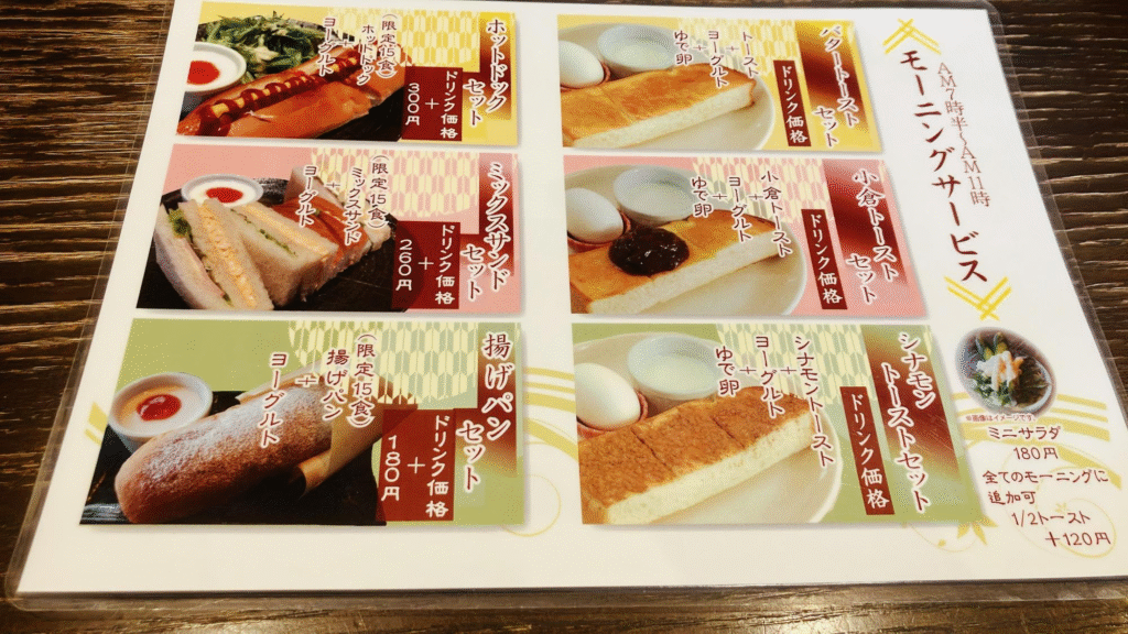 朝は7時半から営業しており、特にモーニングはたくさんのお客さんで賑わっていることが多い人気店です。
