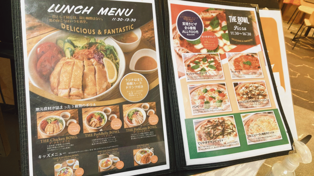ランチタイムにおすすめなのはボウルメニューとピザです。