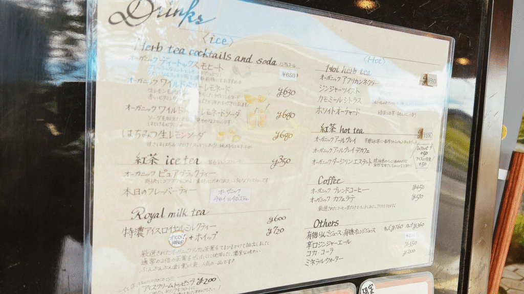 ハーブティーの種類が豊富で、コーヒー党の私でもここでは紅茶をチョイスしたくなります。