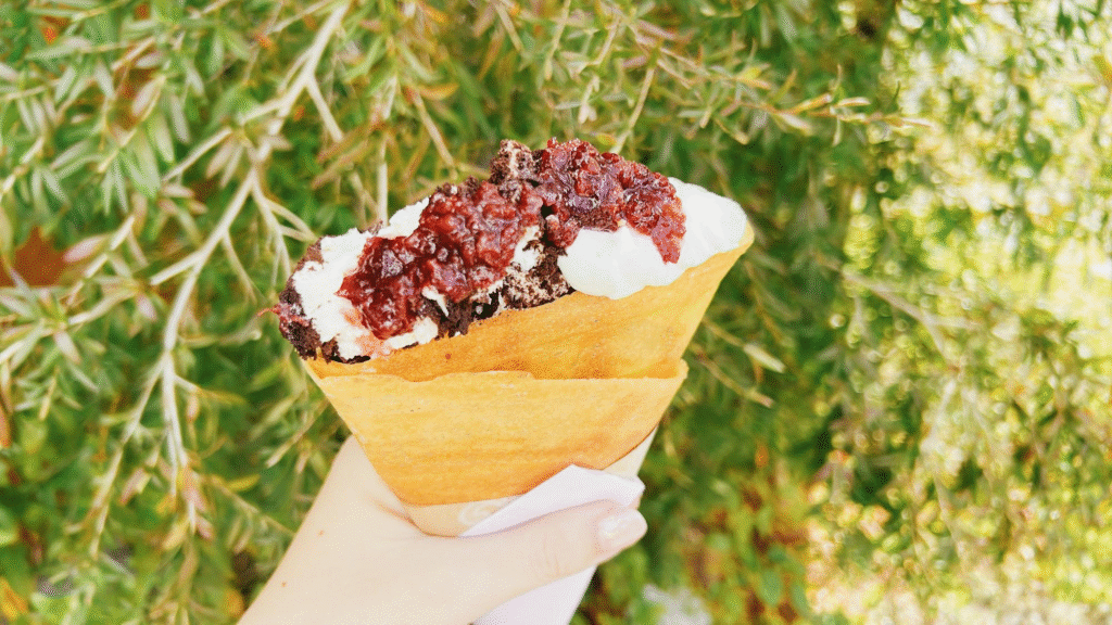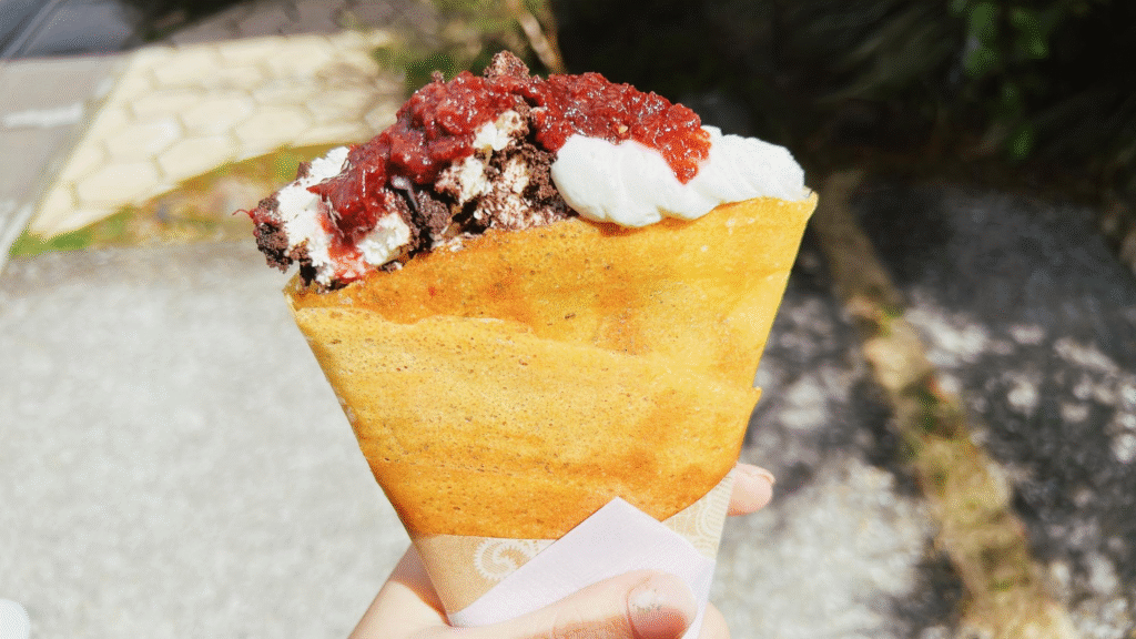 最初はサクサクでも食べているうちにもちもちの食感に変わるクレープは結構見かけますが、こちらは最後までザクっとした食感が続いて驚きました。