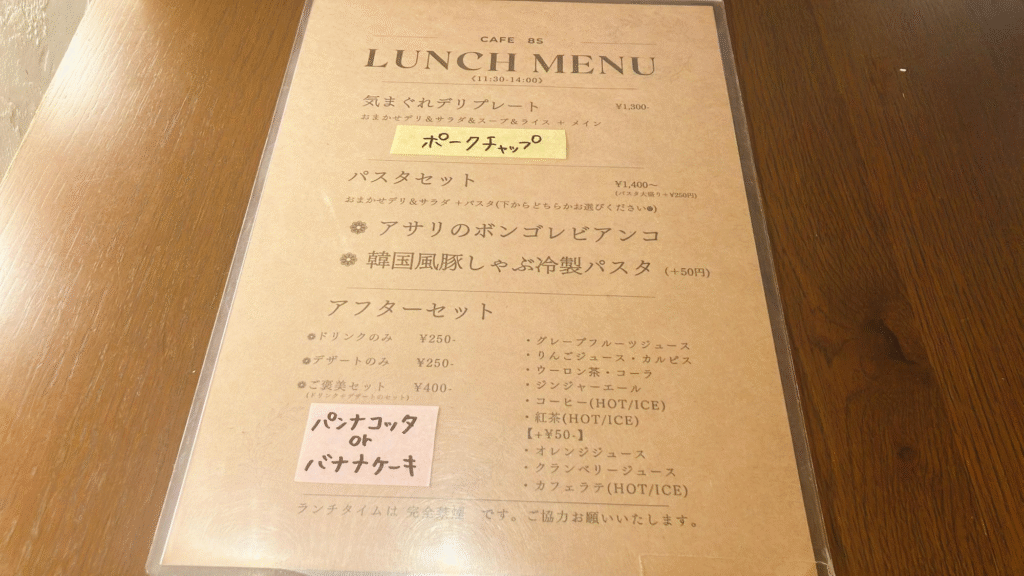ランチは+400円でデザート&ドリンクをセットにすることができます。