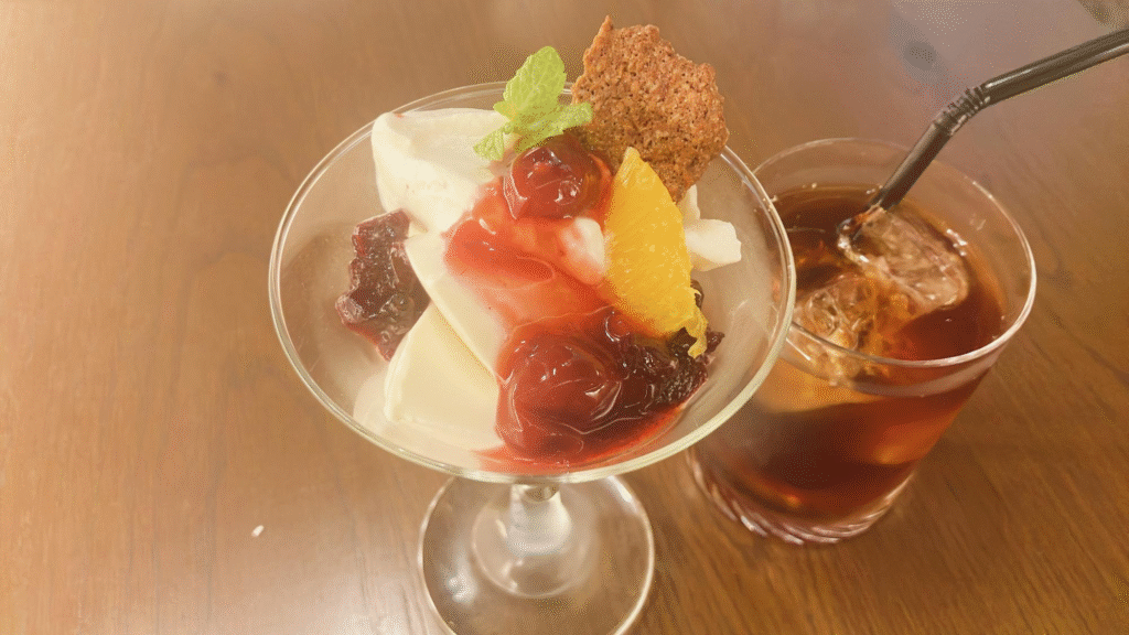 写真はパンナコッタですが、とろりと濃厚なパンナコッタと甘酸っぱいソースがとてもおいしかったです。
