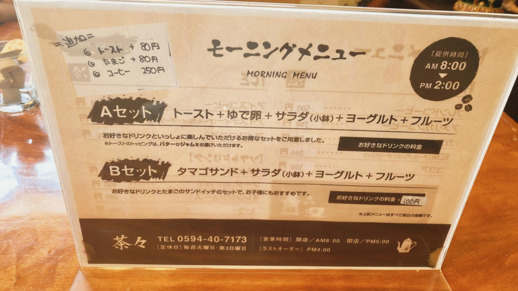 オープンの朝8時から14時までお得なモーニングサービスを実施しています。