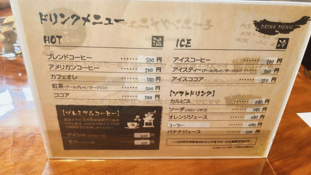 Aセットはドリンク代のみ、タマゴサンドが食べられるBセットでも+100円で食べられてとてもお得!