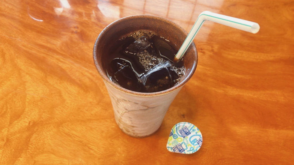 アイスコーヒーはたっぷりと入っており、ゆっくりと楽しむことができます。