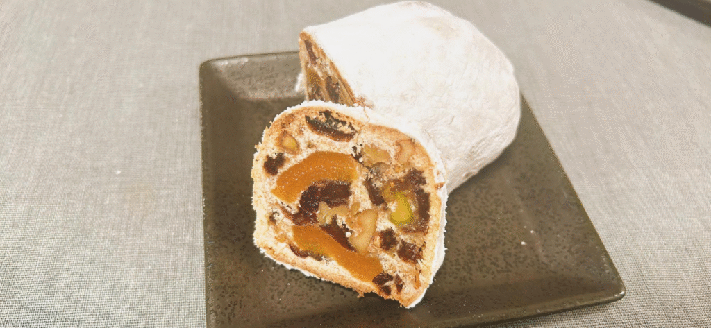 それもそのはず、切ってみると驚くほどナッツやドライフルーツが入っています。