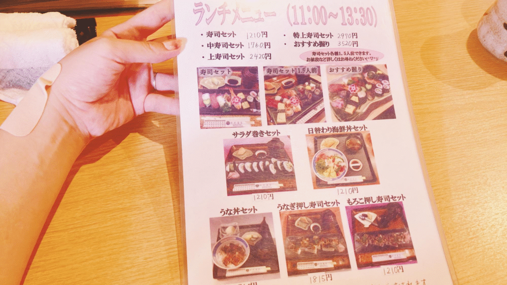 お寿司、日替わりの海鮮丼、うな丼などリーズナブルなランチが豊富でどれにしようか迷いますね。
