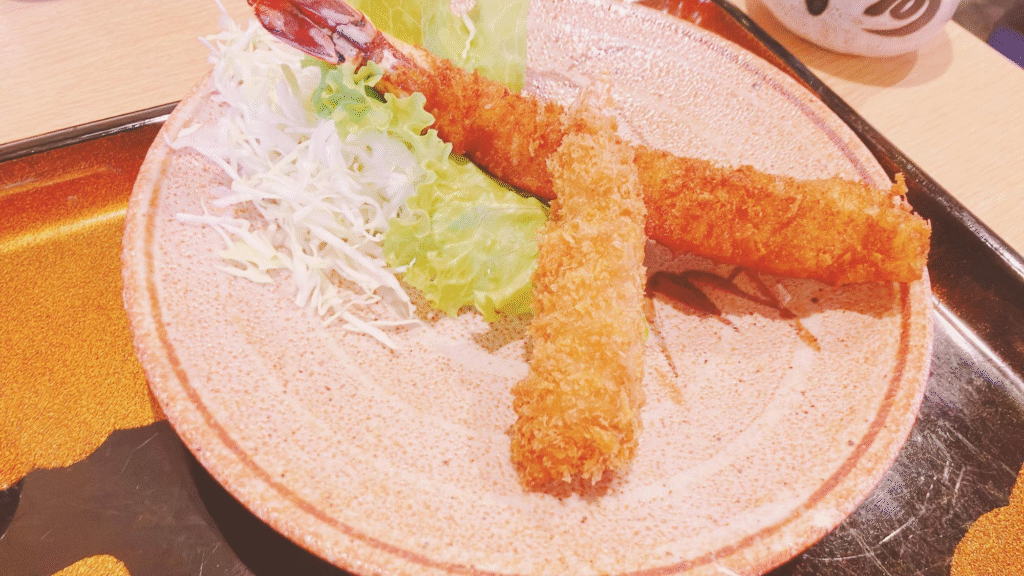大きな海老フライは衣でごまかされているわけではなく、大きくてプリプリ!
