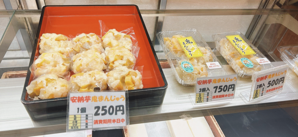 季節に合わせた和菓子の販売も行っており、今の時期は鬼まんじゅうが並んでいましたよ。