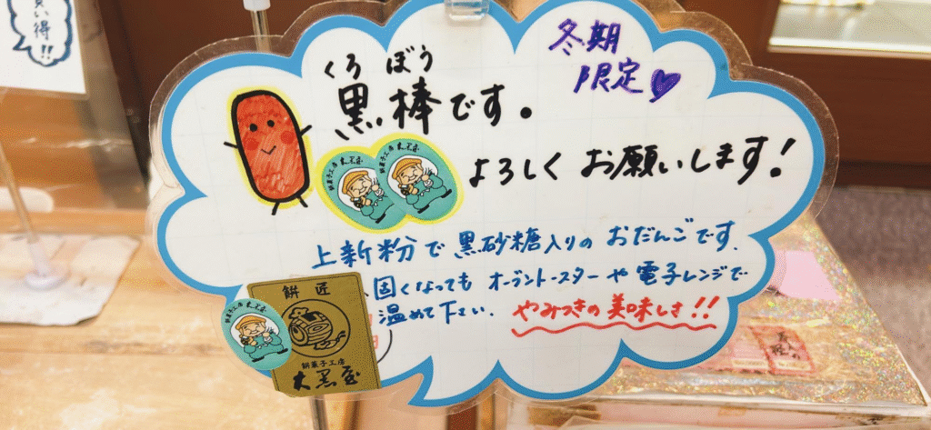 他では食べられない病みつきの味わいの『黒棒』をぜひ食べてみてくださいね。