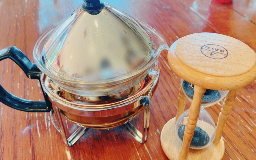 ティーポットと砂時計が運ばれてくると、ふんわりと素敵な紅茶の香りを感じて思わずにっこり。