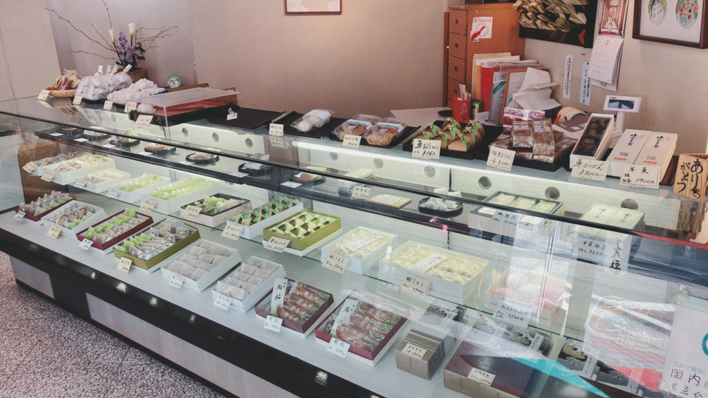 店内は贈答用から自宅用まで様々な和菓子が並んでいます。