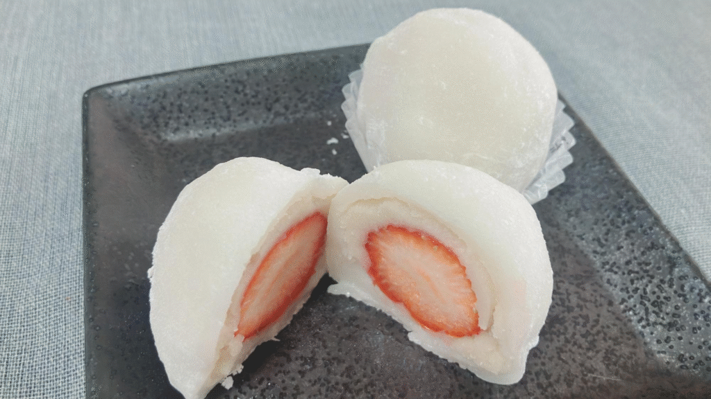 大粒のいちごが上品な白あんと、もちもちのお餅に包まれています。