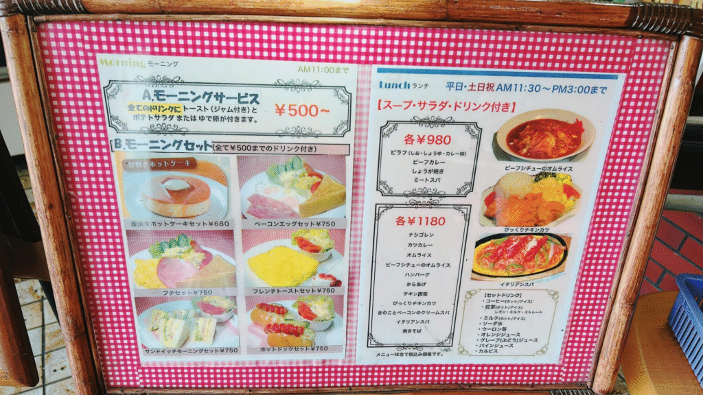11時まではモーニングタイム、11:30~15:00まではランチタイムです。
