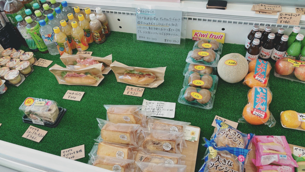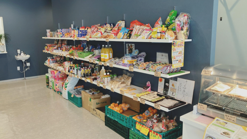 食品や日用品、地元の名産品が並んでおり、車を持たない近隣の方にも便利なお店です。