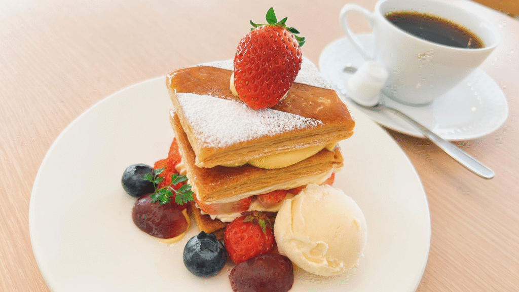 バターの香りたっぷりのサクサクパリパリのパイと、濃厚なカスタードクリーム、いちごのハーモニーが最高においしかったです。