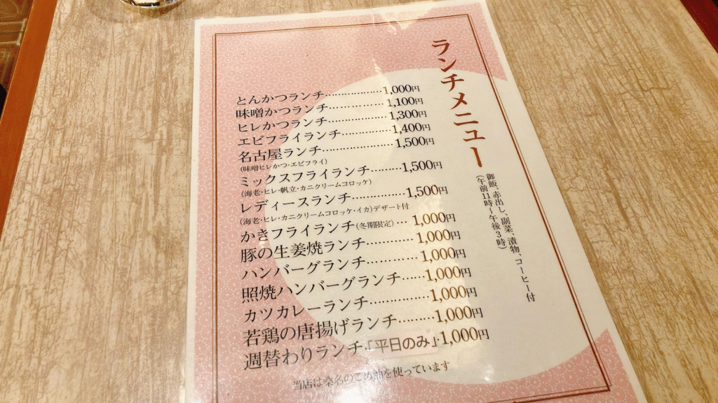 物価高のご時世に、とんかつランチが1000円とは驚いてしまいます。