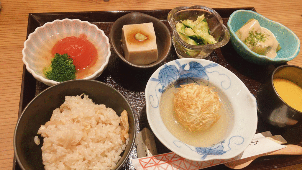 京都の料理教室で習った出汁の引き方を活かしているそうで、薄味ながら素材の良さをしっかりと感じられる味付けになっています。