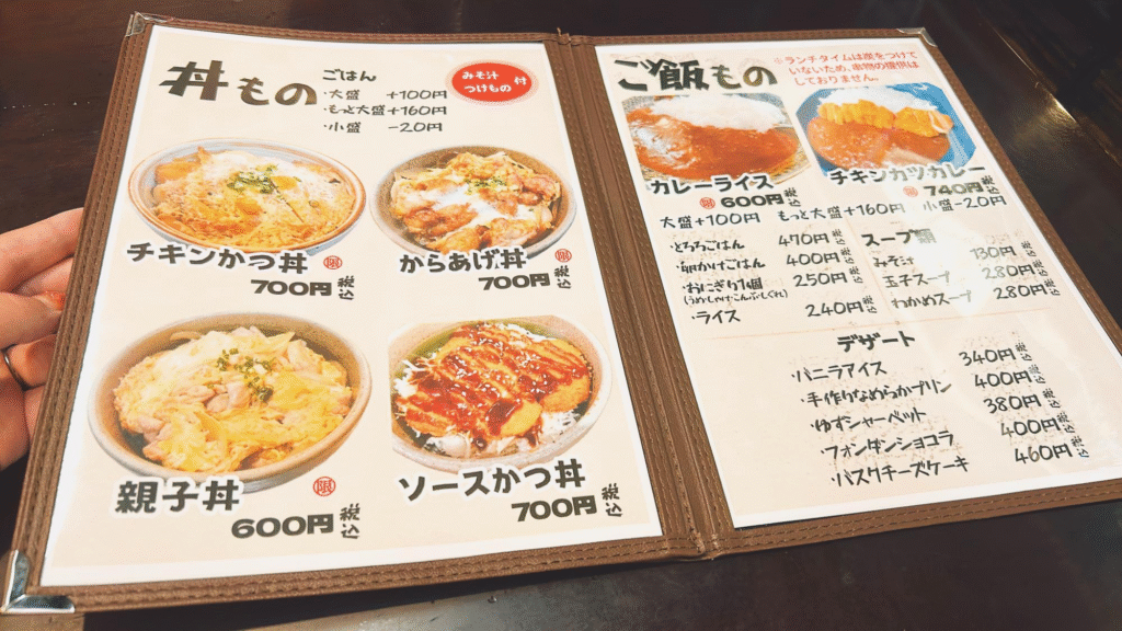 他にも、丼ものやカレーライスなどのごはんものも用意されており、いずれも1000円を超えるメニューはなくお値打ちですね。