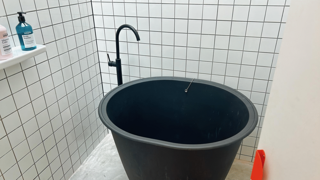 大きな窓の広く明るいリビングのほか、オシャレなお風呂もテンションが上がりますね。