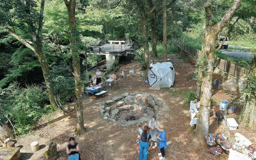 キャンプファイヤーができるほど広いスペースで、ハンモックやテントサウナの貸し出しも行っています。