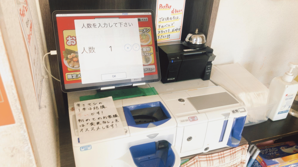 一組ずつ店内に入って、タッチパネル注文&事前会計制です。