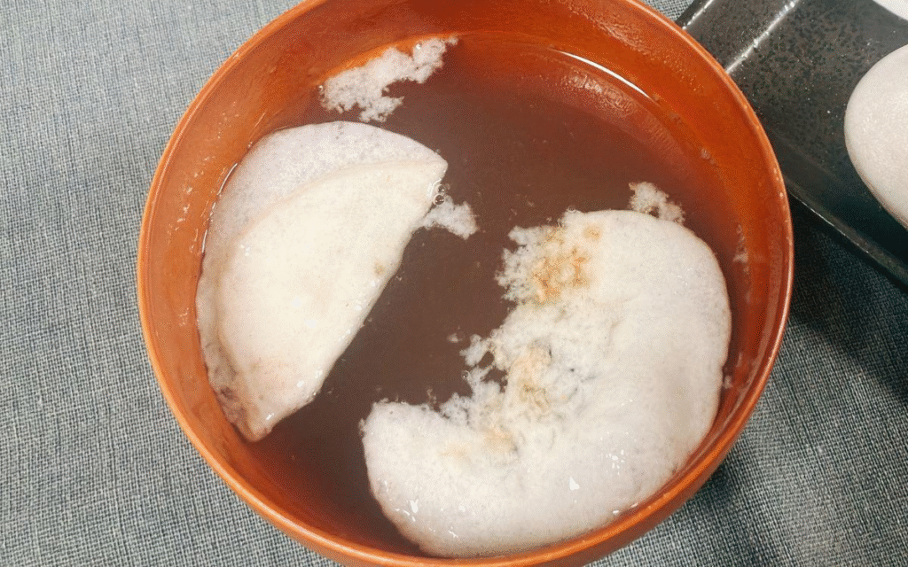 最中の皮はもち米でできているので、お湯を注ぐとまさにお餅のようにトロトロの食感になります。