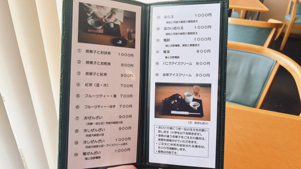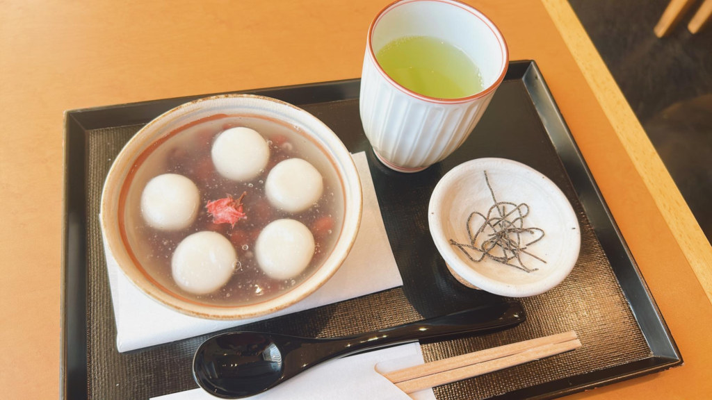抹茶やぜんざい、葛湯、志ら玉などの和スイーツを楽しむことができます。