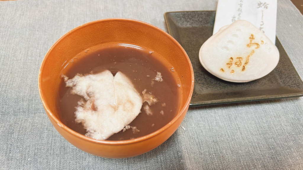 蛤しるこは、蛤形がかわいらしいおしるこです。