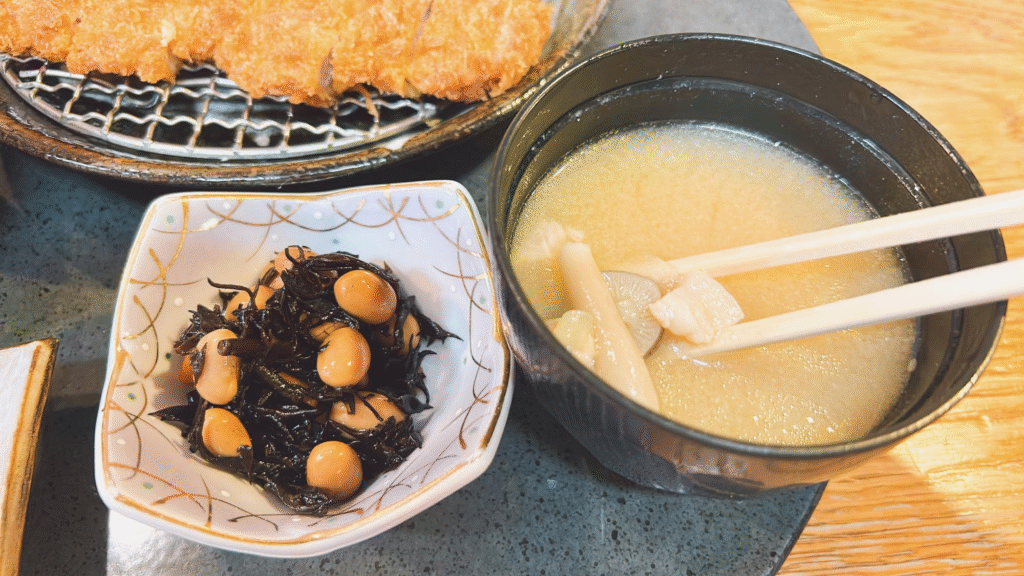 お肉の脂が溶けだした甘みを感じるお味噌汁で、とてもおいしかったです。