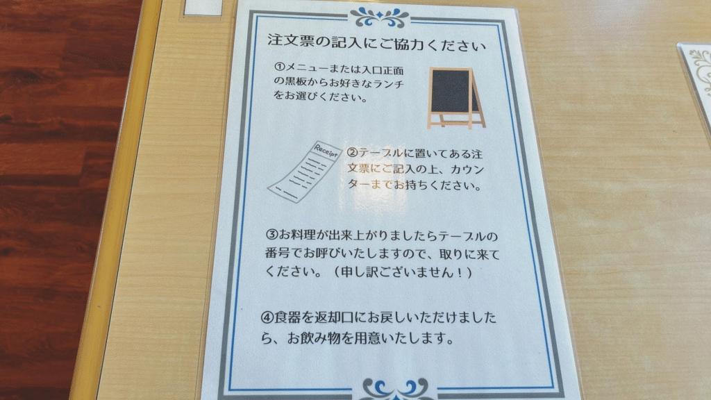 テーブルに置かれている注文票に数量を記入してカウンターへ提出します。