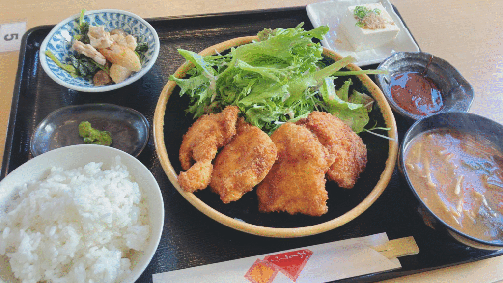 揚げたてサクサクでやわらかなお肉がおいしく、ソースにつけるとごはんが進む味でした。