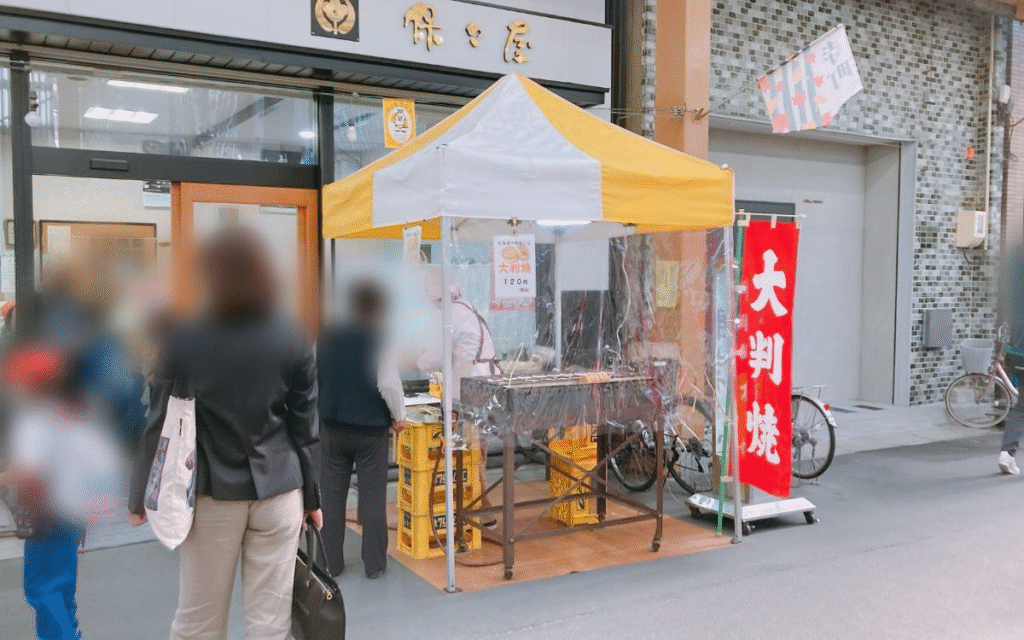 三八市の時はお店の前にテントが出て、大判焼の販売をしています。