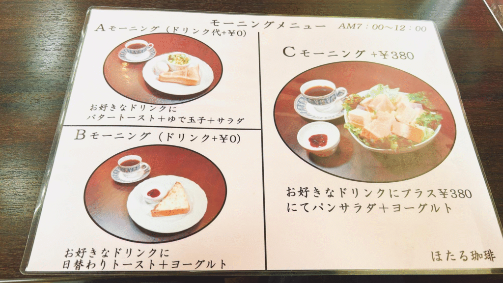 ドリンク代のみで楽しめる2種類のモーニングがあります。