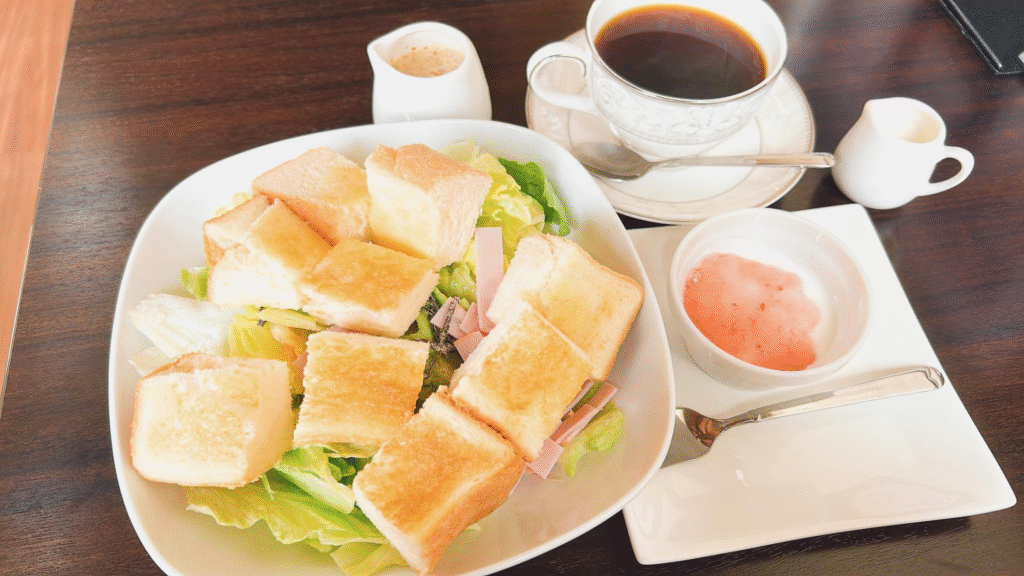 全部食べるとおなかいっぱいになるボリューム満点のモーニングでした。