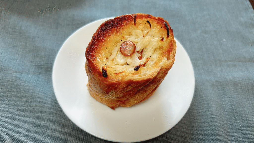 香ばしいフランスパンの中に玉ねぎやウインナーがたっぷりと入った一品ですよ。