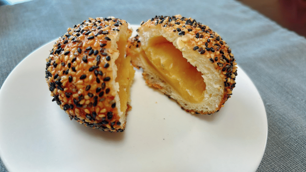ねっとりホクホクの焼き芋餡がゴマたっぷりの生地に包まれた一品で、ゴマの香ばしさと甘いお芋が堪りません。