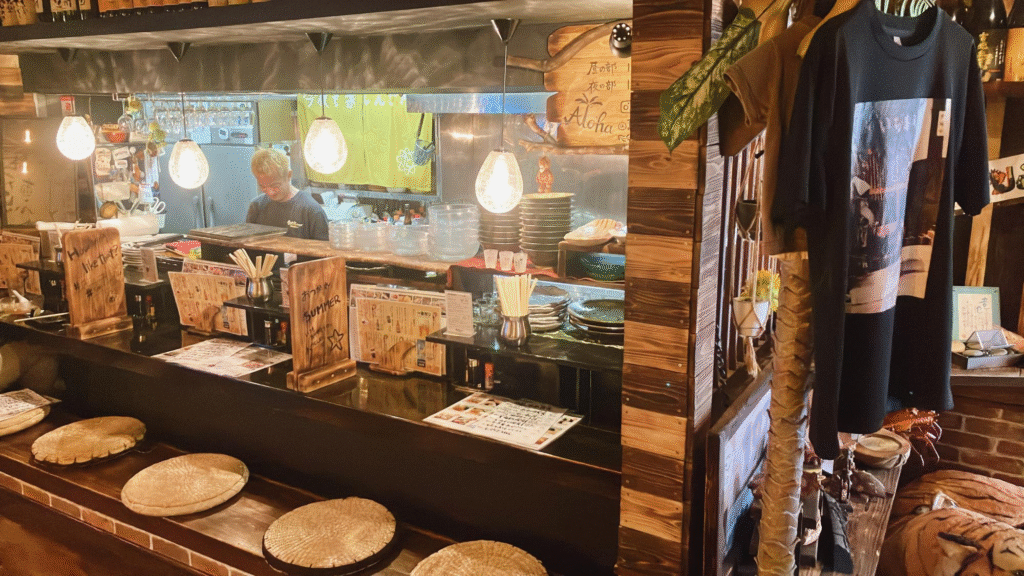 ハワイアンな雰囲気のお店で、明るく楽しい店主がトレードマークです。