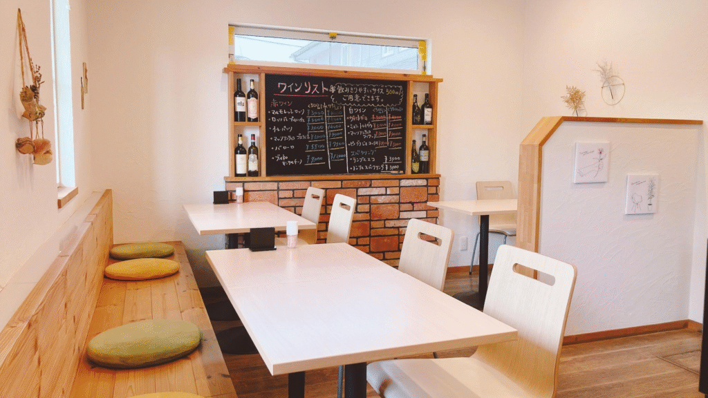 店内は白を基調とし、木のぬくもりを感じるオシャレな空間です。