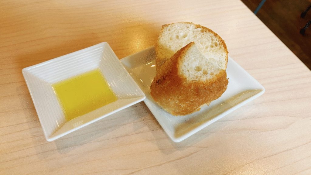 あまりお行儀がよくないかもしれませんが、パスタのソースがおいしすぎてパンにつけて食べたくなってしまいました。