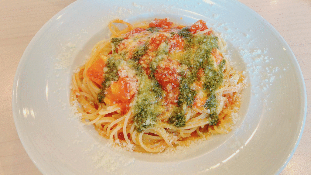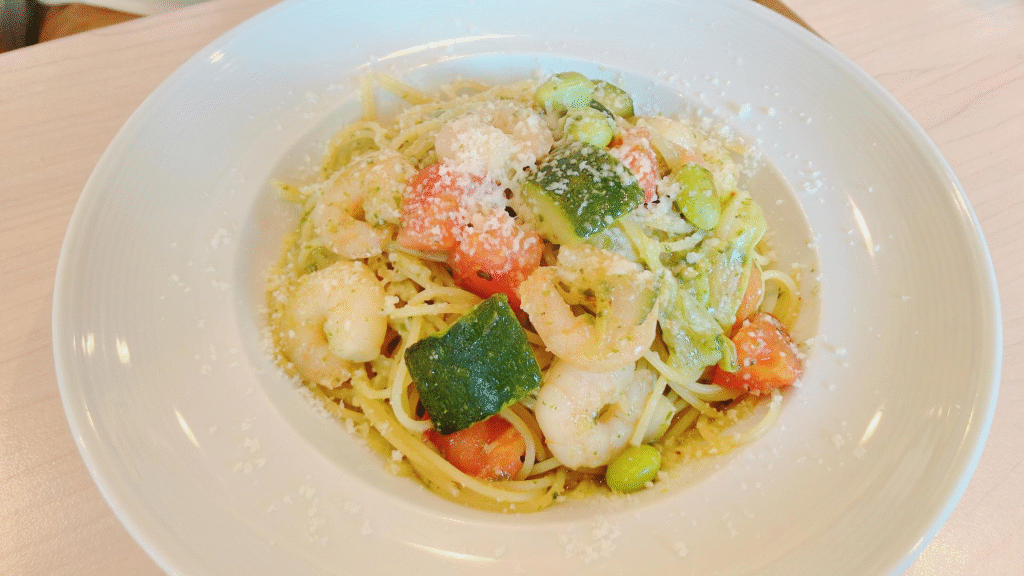 ジェノベーゼソースの香りがよくて、細めのパスタに良く絡んで本当においしいです。