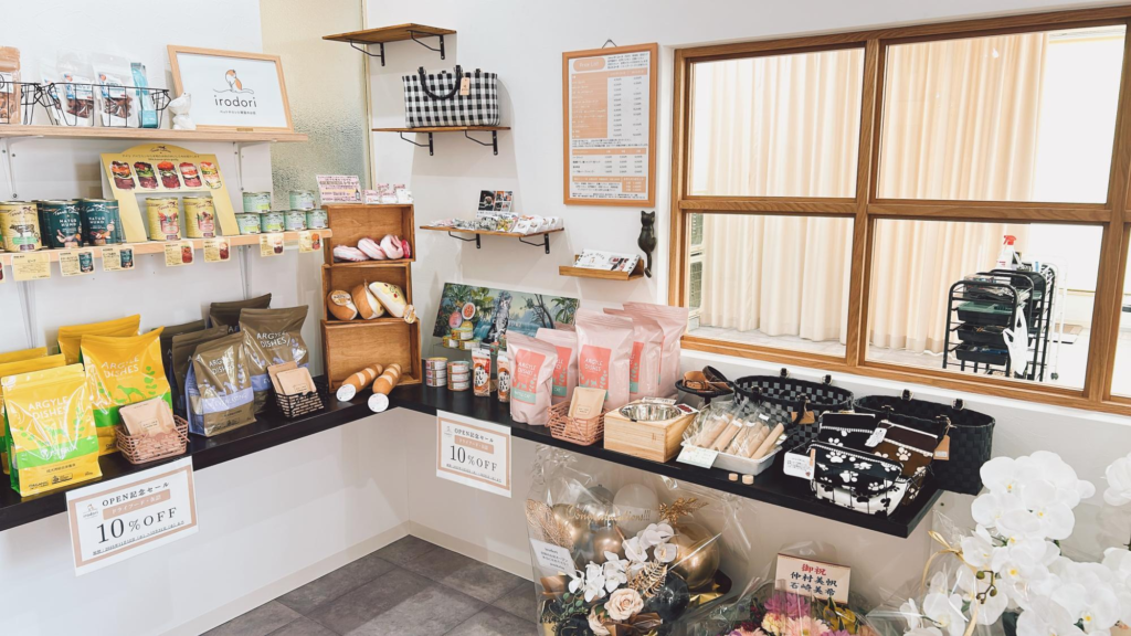 こだわりのペットフードや雑貨が並んでいます。