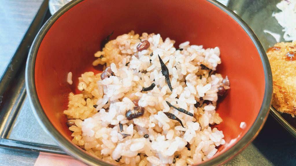 ごはんは赤(雑穀米)と白(白米)から選べます。