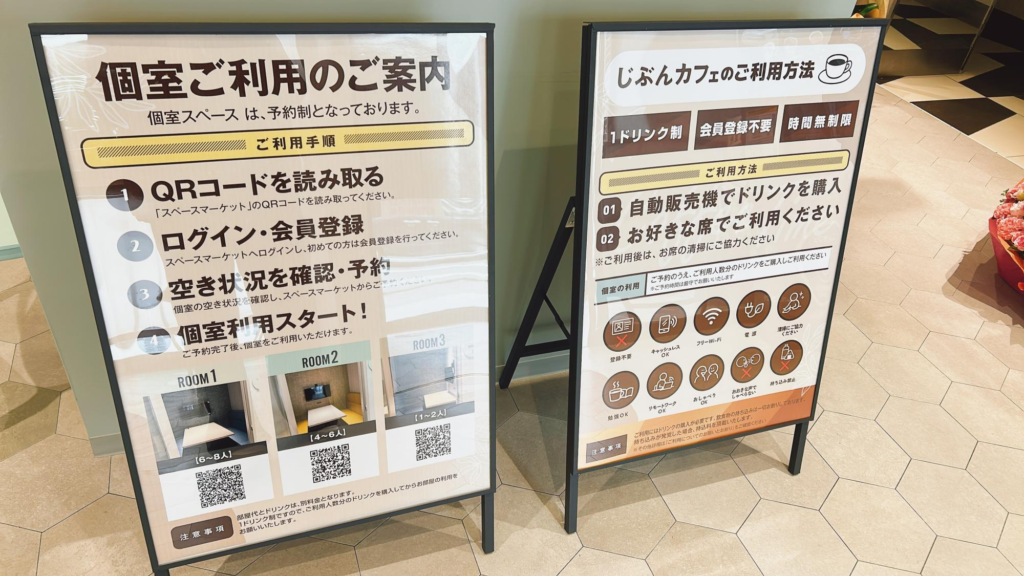 個室だけは会員登録の上予約が必要ですが、逆に言えば確実に部屋を確保することができるので便利だと思います。