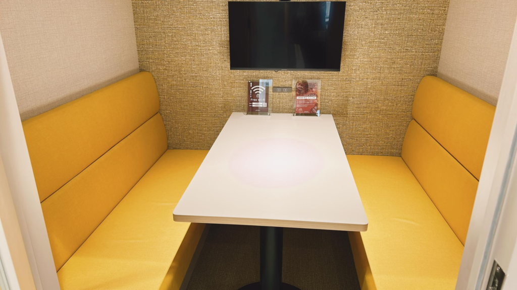 1~2人用の小さな部屋から、6~8人用の広めの部屋まであるのでちょっとした会議の場としても利用できそうです。